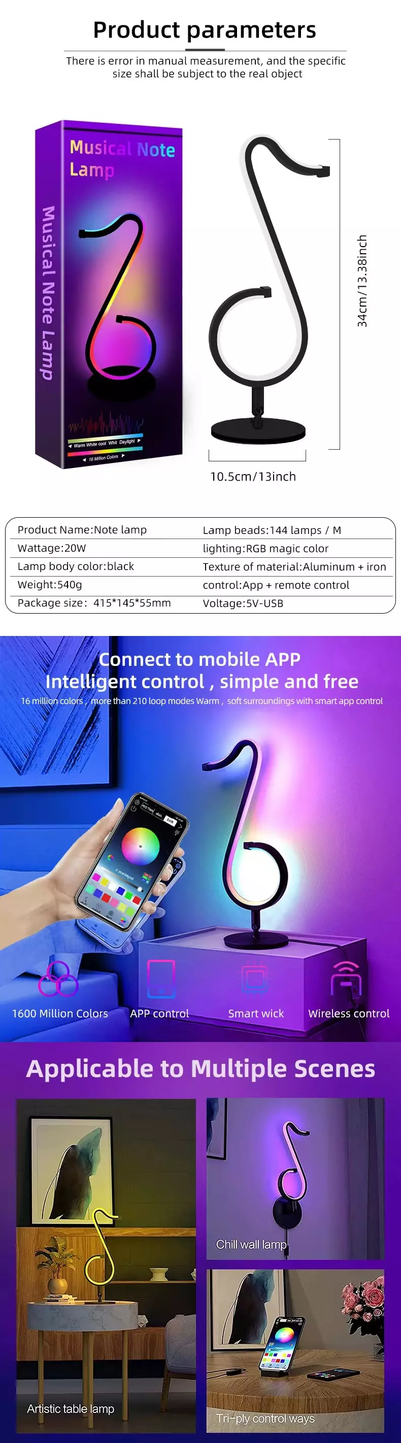 Es gibt eineneue RGB -farbenfrohe Musiknoten -Lampe mit Bluetooth App Control, 12.9$/Kit, Farbboxpackung.