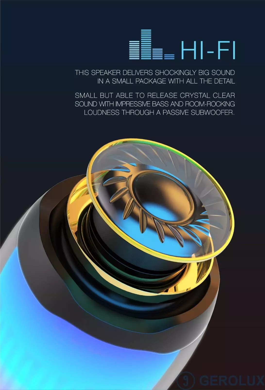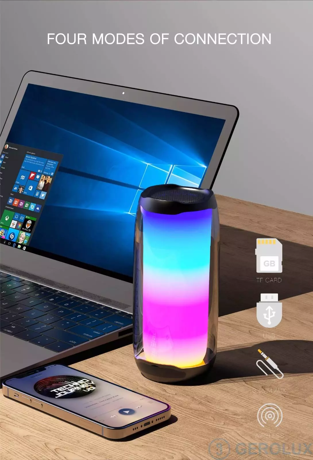 Built-in 5000mAh large capacity battery in the portable wireless speaker supports continuous playtime up to 10 hours at 50% volume and off the lights. Also you can turn off the light show for extra play hours. (Determined by volume and audio content of speaker played)